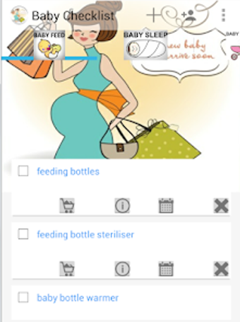 Cette application est une liste de contrôle qui est un moyen simple de suivre tous les articles nécessaires pour le bébé. Vous pouvez utiliser cette liste de contrôle même sans connexion Internet, tant que vous avez le système d'exploitation Android.